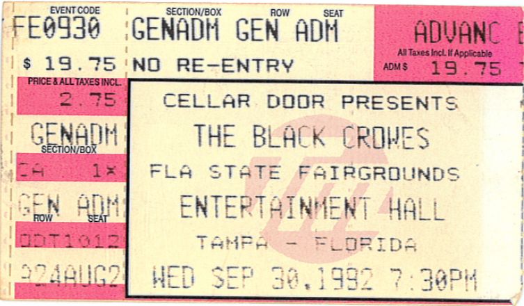 The Black Crowes - 9/30/92 at Florida State Fairgrounds (Tampa)