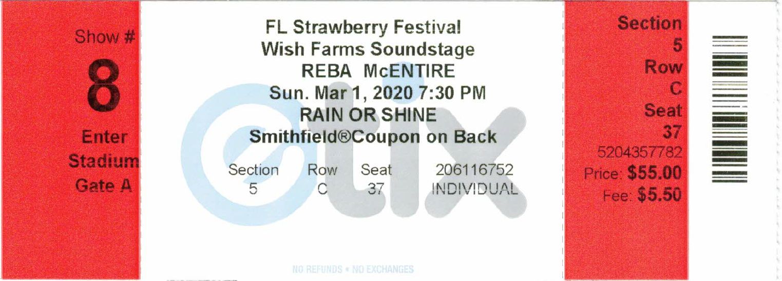 Reba McEntire - 3/1/20 at Florida Strawberry Festival |