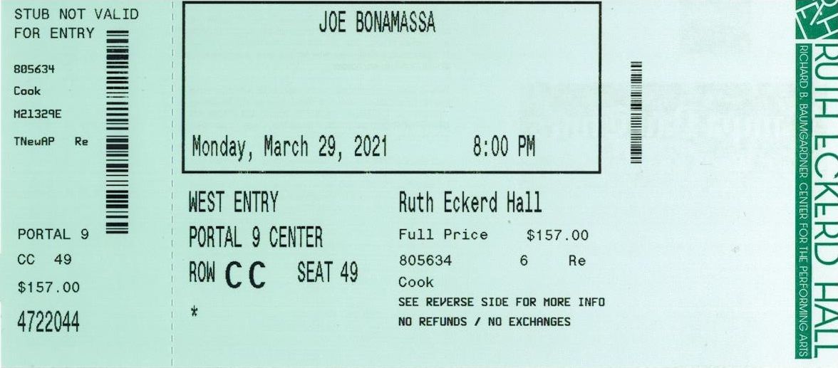 Joe Bonamassa - 3/29/21 at Ruth Eckerd Hall |