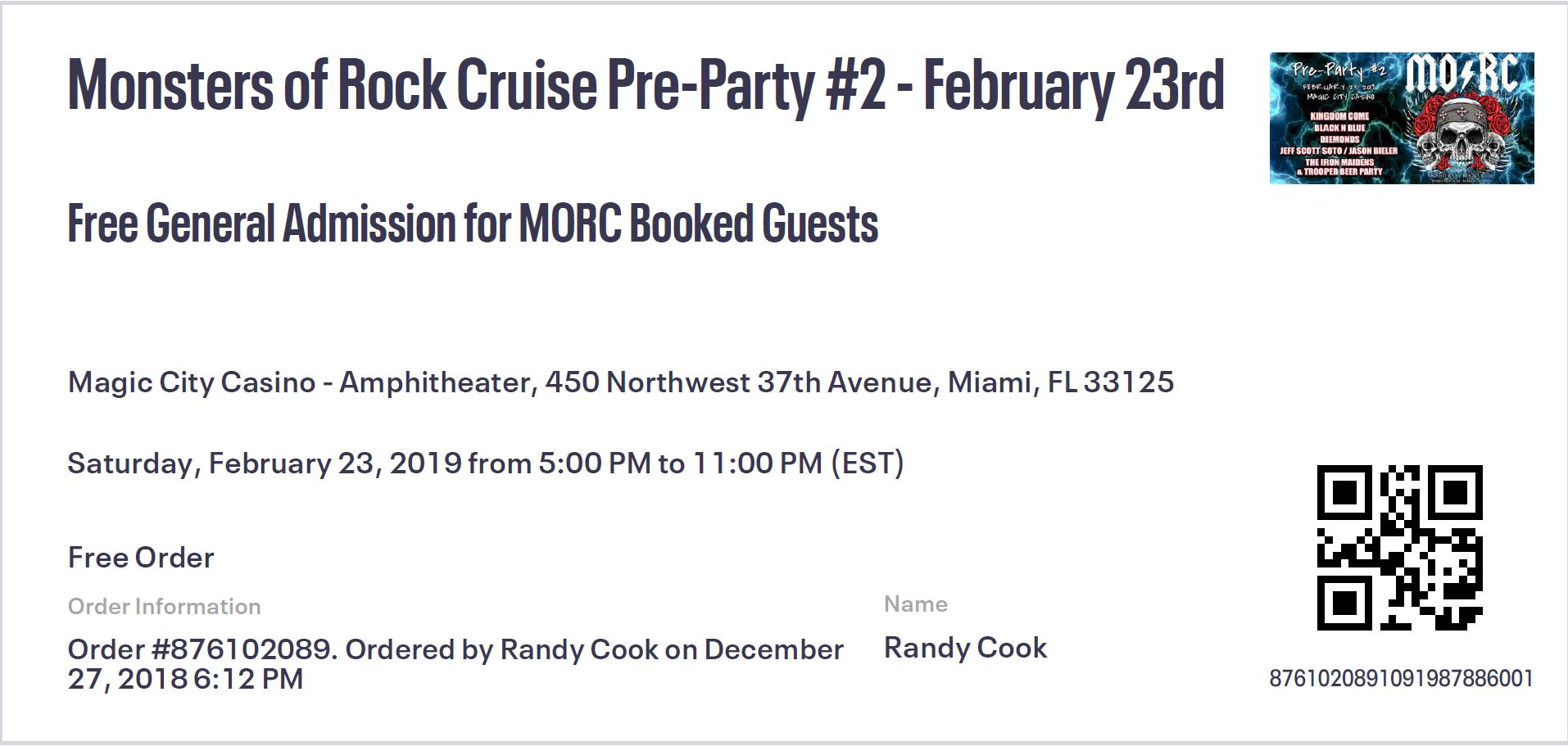 Monsters of Rock Cruise - 2/24/19-3/1/19 |