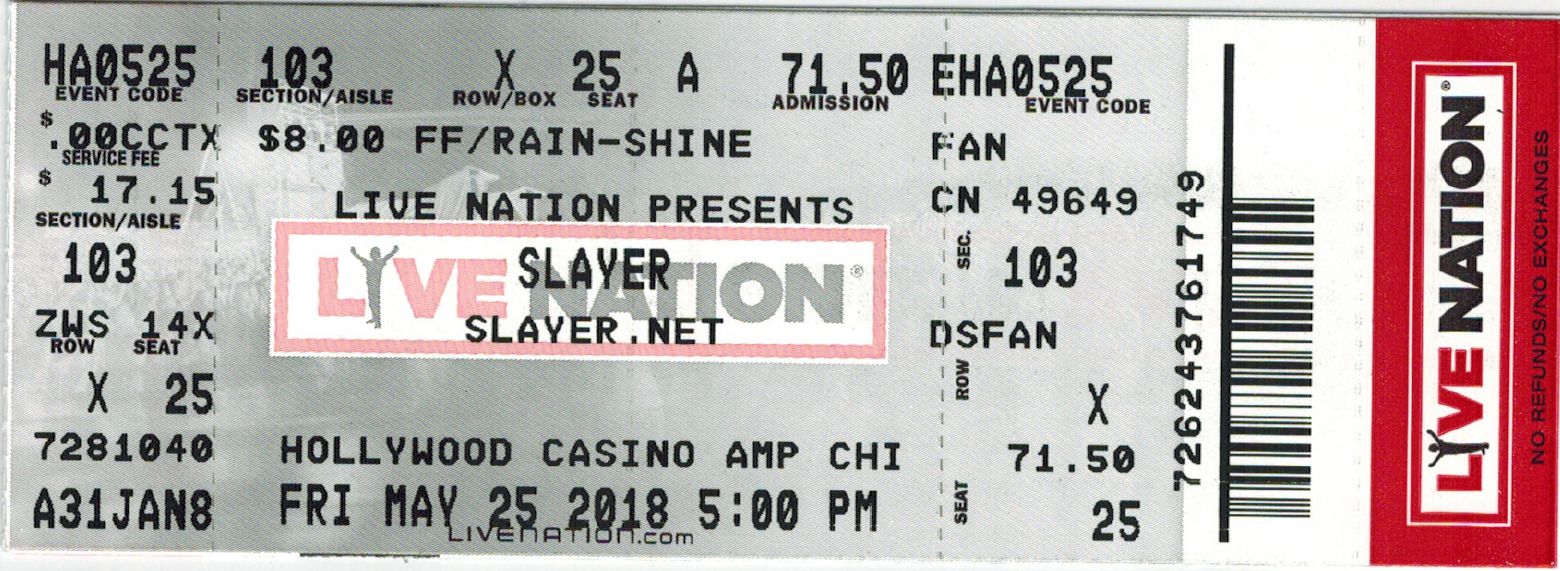 Slayer - 5/25/18 at Hollywood Casino Amphitheatre |