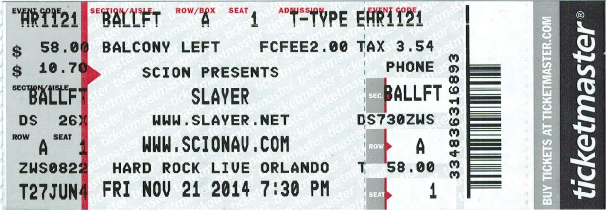 Slayer - 11/21/14 at Hard Rock (Orlando) |